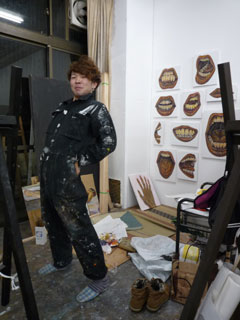 宮本:「口を描いています。有機的な形に興味があって、口以外の部分は完全に消して描いています。」