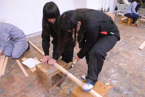 授業スタートは恒例のイーゼル作りからです。